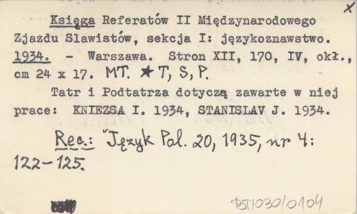 Księga Referatów II Międzynarodowego Zjazdu Slawistów, sekcja I: językoznawstwo. 1934