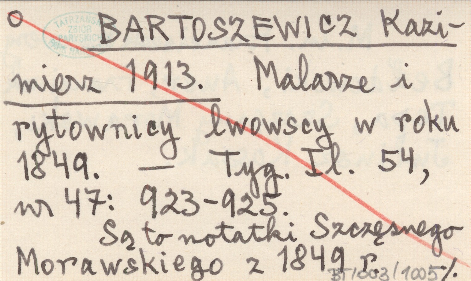 BARTOSZEWICZ Kazimierz 1913 Malarze i rytownicy lwowscy w roku 1849.