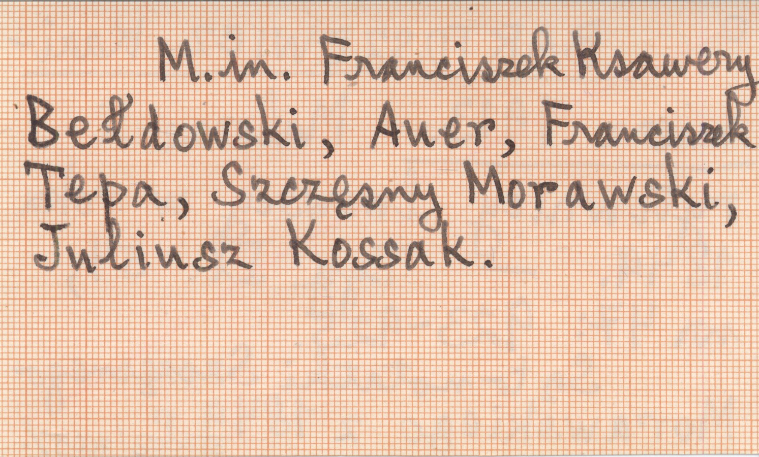Tygodnik Ilustrowany, 54, nr 47: 923-925. Są to notatki Szczęsnego Morawskiego z 1849 r. M. in. Franciszek Ksawery Bełdowski, Auer, Franciszek Tepa, Szczęsny Morawski, Juliusz Kossak.