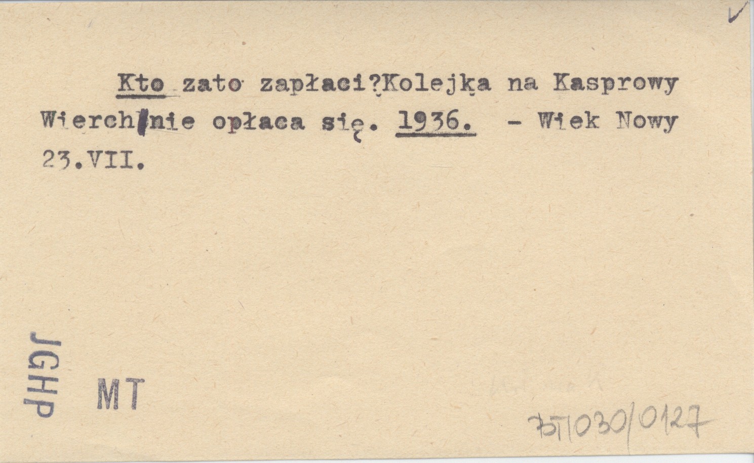Kto zato zapłaci? Kolejka na Kasprowy Wierch nie opłaca się. 1936