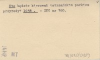 Kto będzie kierował tatrzańskim parkiem przyrody? 1938