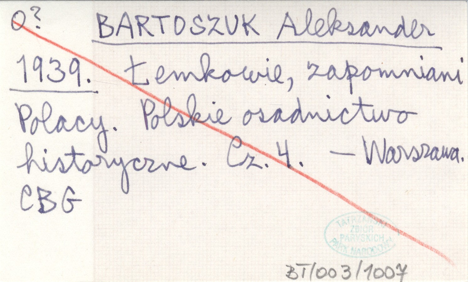 BARTOSZUK Aleksander 1939 Łemkowie, zapomniani Polacy.