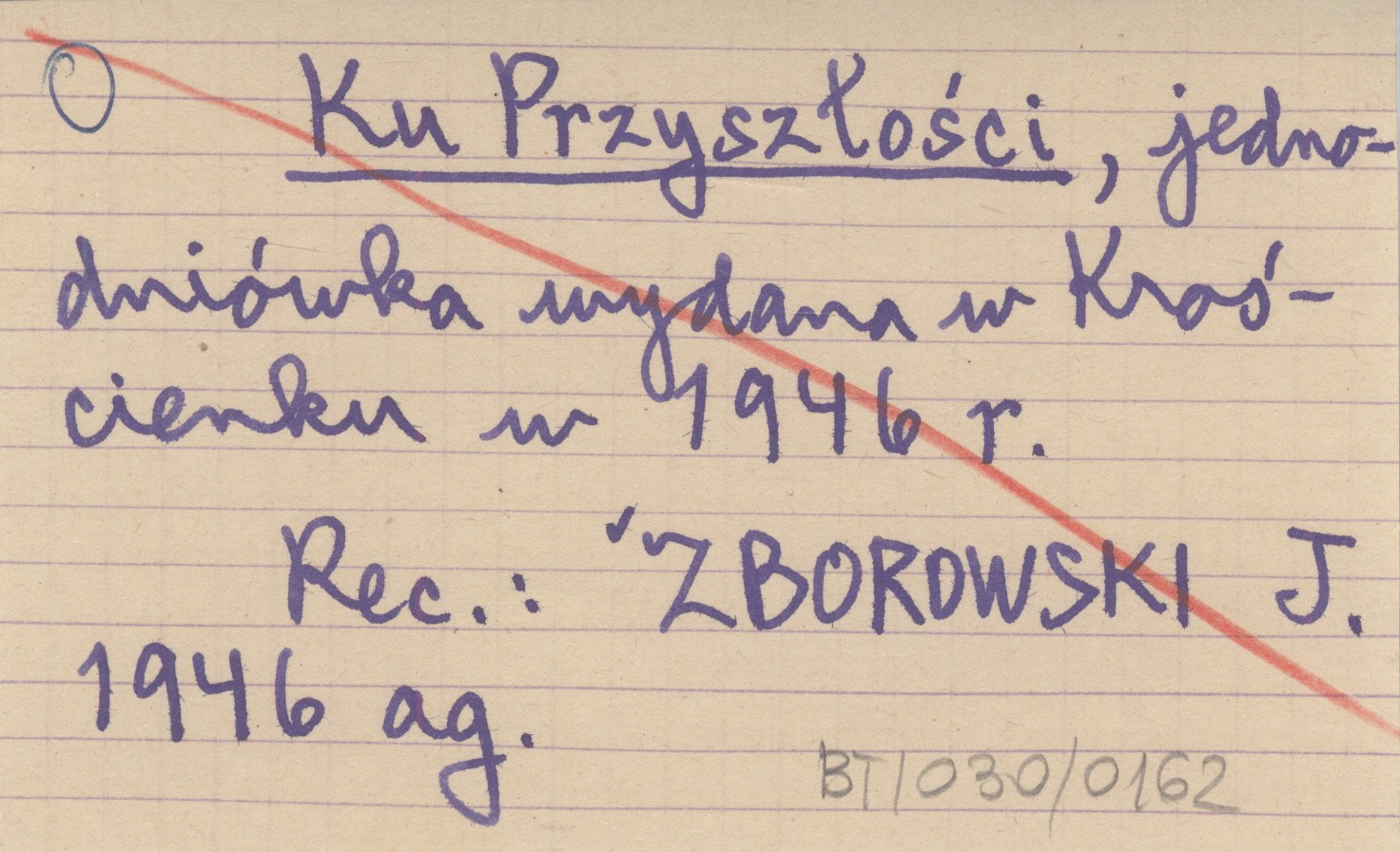 Ku Przyszłości, Jednodniówka wydana w Krościenku w 1946 r. REC: ZBOROWSKI J. 1946 ag