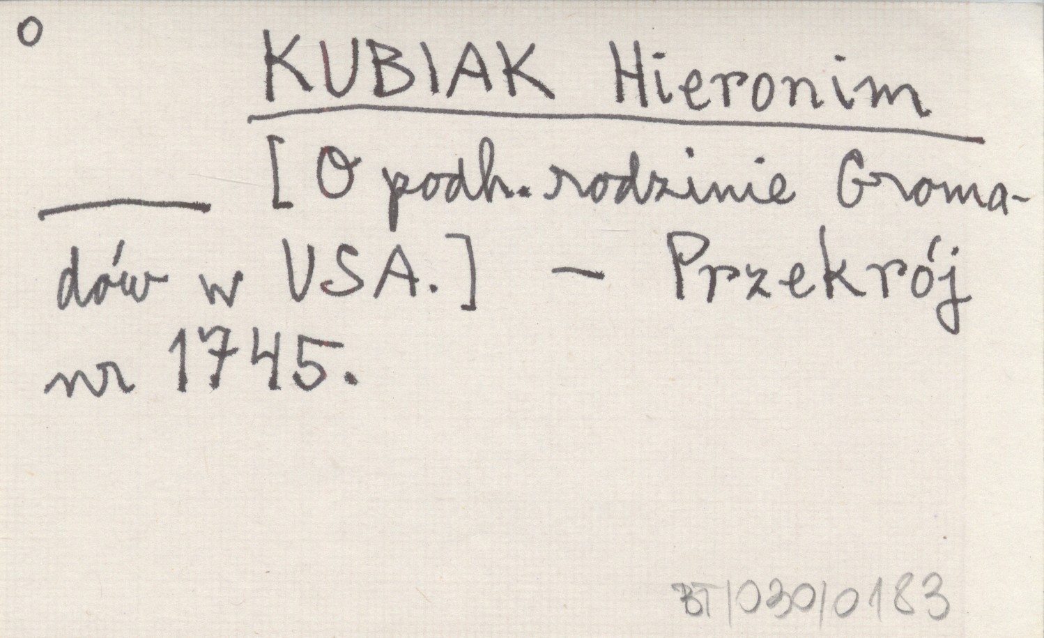 KUBIAK Hieronim [O podh. rodzinie Gromadów w USA.]