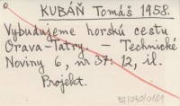 KUBÁŇ Tomáą 1958 Vybudujeme horskú cestu Orava - Tatry.