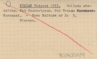 KUBIAK Tadeusz 1953 Ballada niedzicka. Pod Czorsztynem. Pod Trzema Koronami.