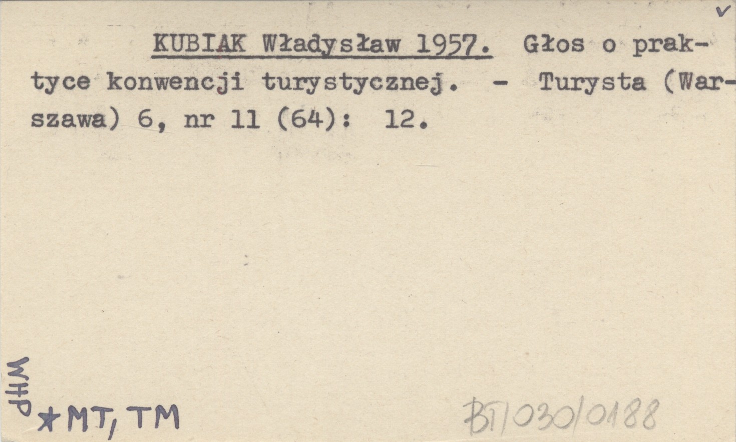KUBIAK Władysław 1957 Głos o praktyce konwencji turystycznej.