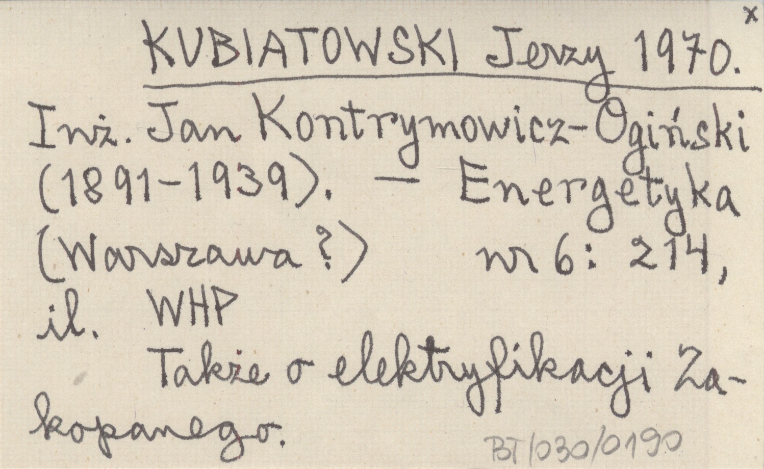 KUBIATOWSKI Jerzy 1970 Inż. Jan Kontrymowicz-Ogiński (1891-1939).