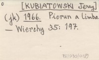 (jk) [KUBIATOWSKI Jerzy] 1966 Piorun a limba.