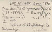 KUBIATOWSKI Jerzy 1970 Inż. Jan Kontrymowicz-Ogiński (1891-1939).