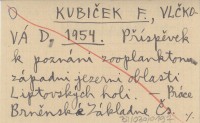 KUBIČEK F. VLČKOVÁ, D. ; 1954 Příspěvek k poznáni zooplanktonu západni jezerni oblasti Liptovských holi.