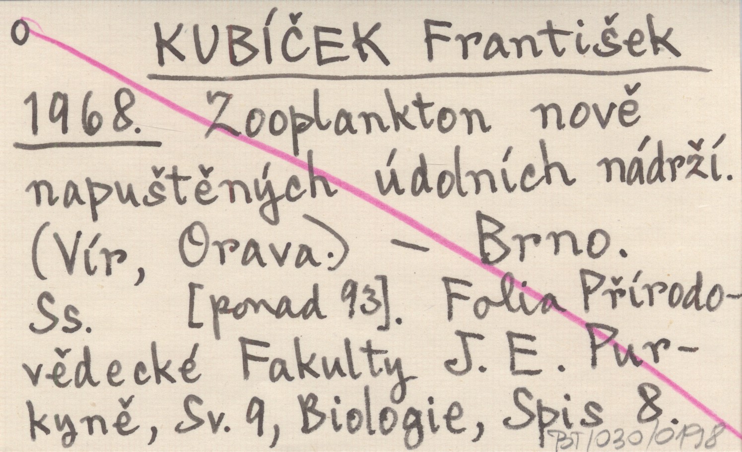 KUBÍČEK Frantiąek 1968 Zooplankton nově napuątěných údolních nádrľí. (Vír, Orava).