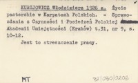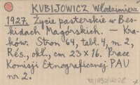 KUBIJOWICZ Włodzimierz 1926 b [Streszczenie pracy nad szałaśnictwem Beskidów Magórskich.]