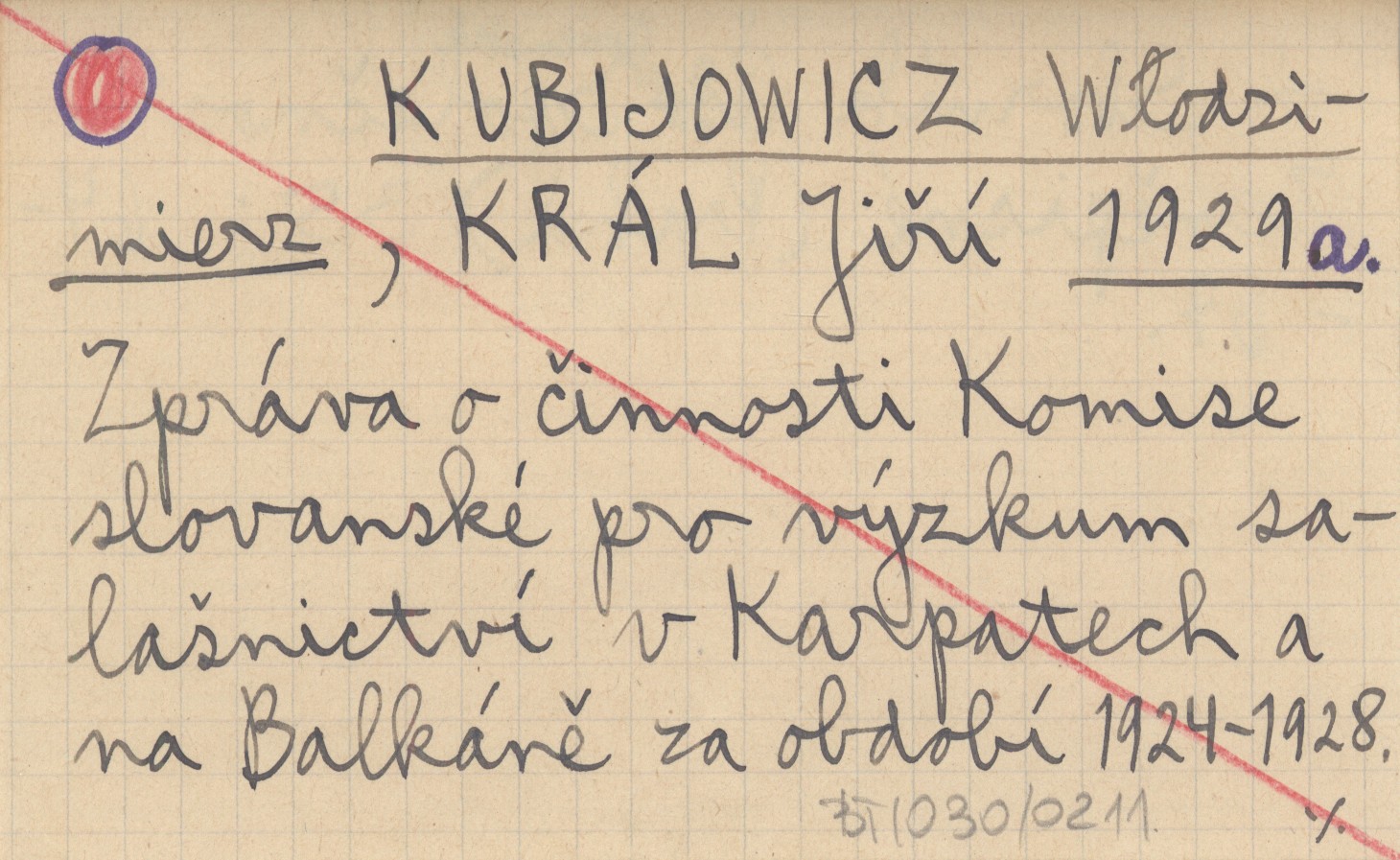 KUBIJOWICZ Włodzimierz KRÁL, Jiří. ; 1929 a Zpráva o činnosti Komise slovanské pro výzkumu salaąnictví v Karpatech a na Balkáně za období 1924-1928.