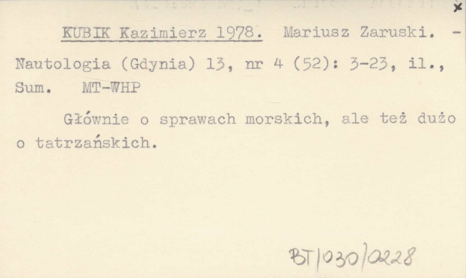 Nautologia (Gdynia) , 13, nr 4 (52): 3-23, il., Sum. Głównie o sprawach morskich, ale też dużo o tatrzańskich.