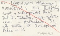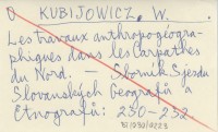KUBIJOWICZ W. Les travaux anthropogéographiques dans les Carpathes du Nord.