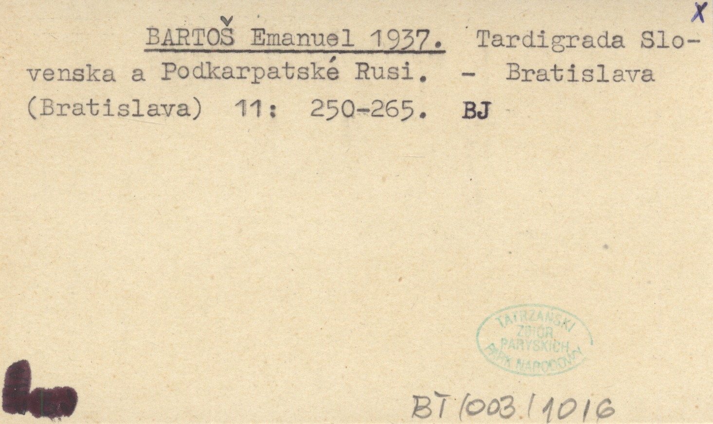 BARTOŠ Emanuel 1937 Tardigrada Slovenska a Podkarpatské Rusi.