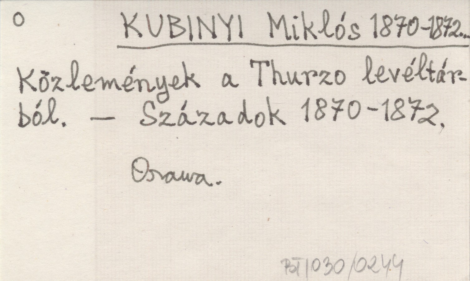 KUBINYI Miklós 1870-1872... Közlemények a Thurzo levéltárból.