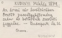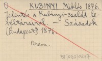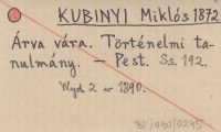 KUBINYI Miklós 1876 Jelentés a Kubinyi-család levéltárairól.
