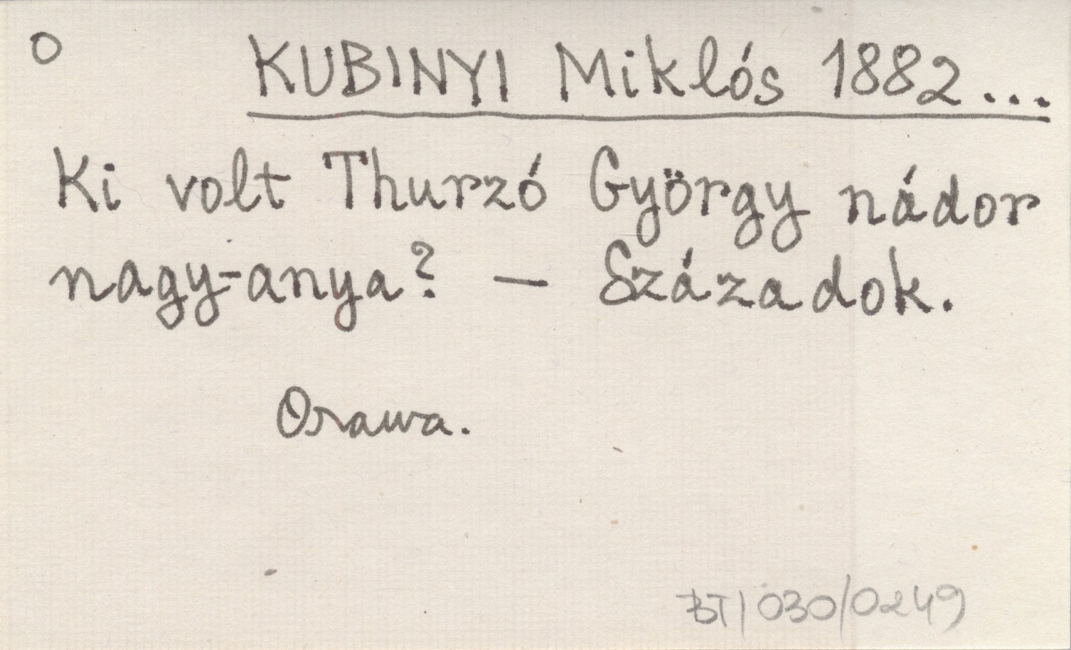 KUBINYI Miklós 1882... Ki volt Thurzó György nádor nagy-anya?