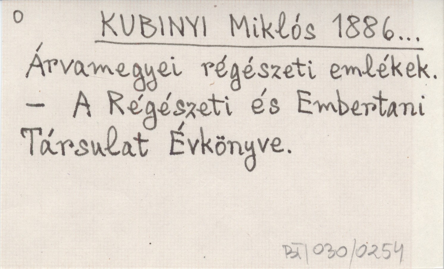 KUBINYI Miklós 1886... Árvamegyei régészeti emlékek.