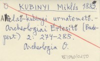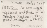 KUBINYI Miklós 1885 (1886?) Az árvamegyei régészeti emlékek.