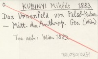 KUBINYI M. 1886 Orszagos regesety tarsulát.