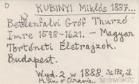 KUBINYI Miklós 1887... Bethlenfalvi Gróf Thurzó Imre 1598-1621.