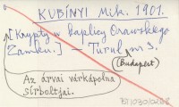 KUBINYI Miklós 1898 Az árvaváraljai urnatemetőről.