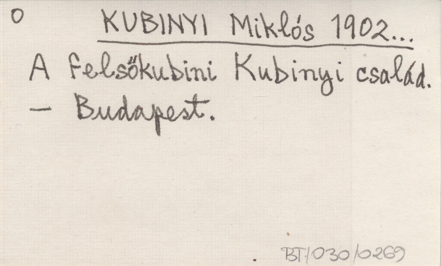 KUBINYI Miklós 1902... A felsőkubin Kubinyi család.
