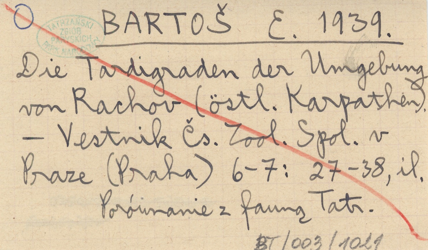 BARTOŠ E. 1939 Die Tardigraden der Ungebung von Rachov (östl. Karpathen).