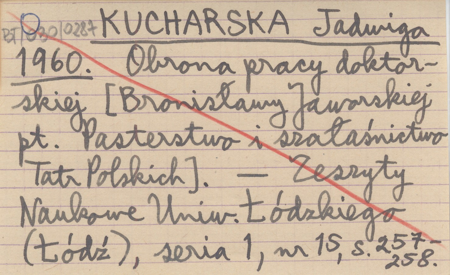 KUCHARSKA Jadwiga 1960 Obrona pracy doktorskiej [Bronisławy Jaworskiej pt. Pasterstwo i szałaśnictwo Tatr Polskich.]