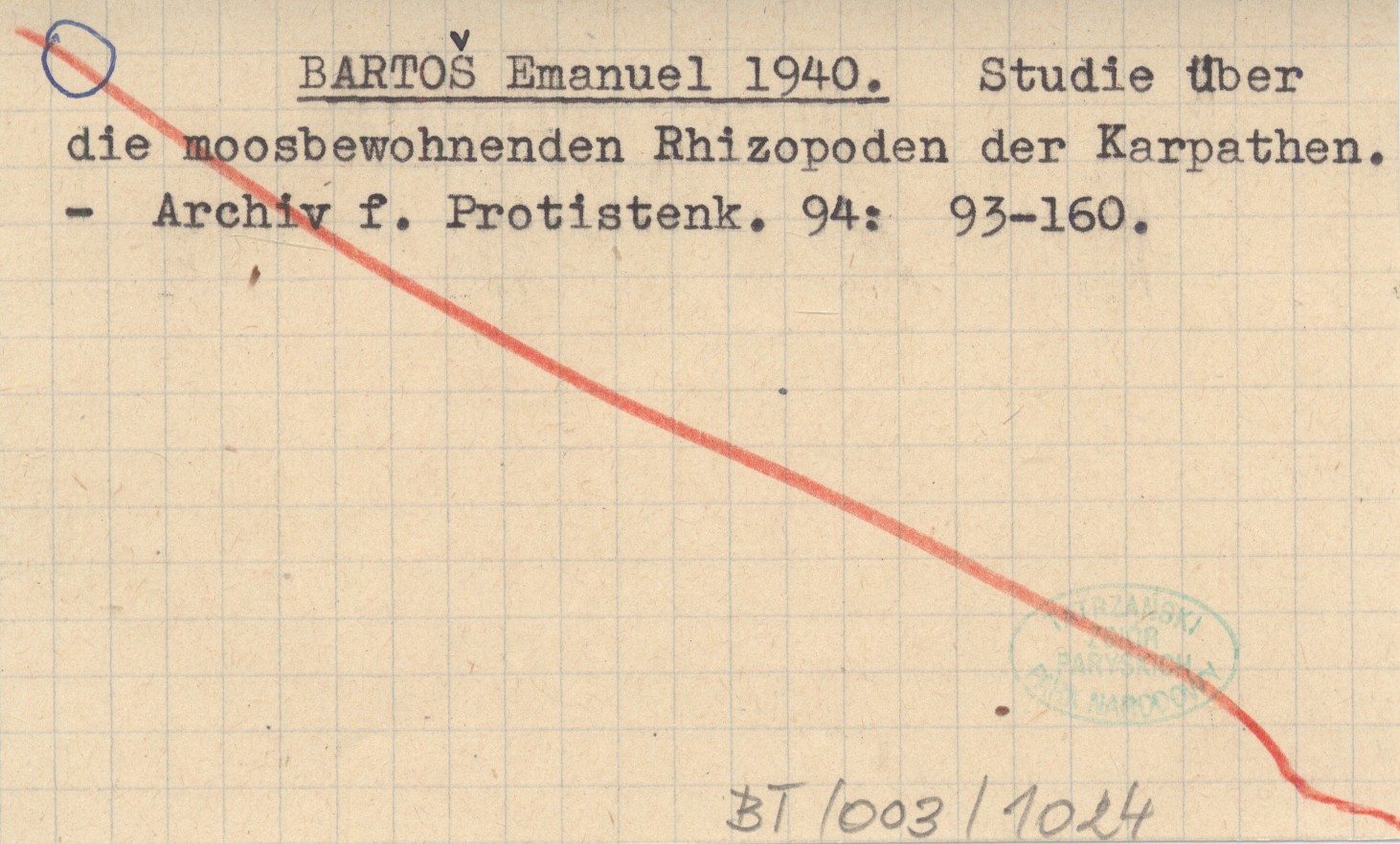 BARTOŠ Emanuel 1940 Studie über die moosbewohnenden Rhizopoden der Karpathen.