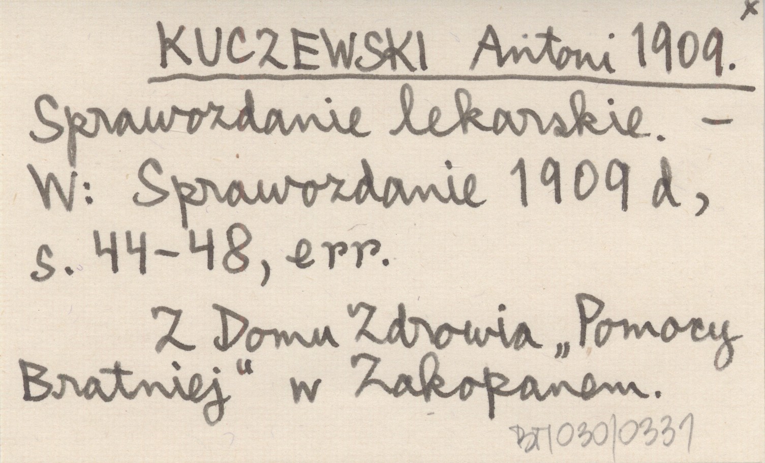 Sprawozdanie 1909 d , S. 44-48, err. Z Domu Zdrowia "Pomocy Bratniej" w Zakopanem.