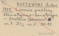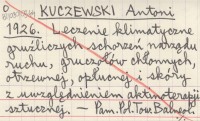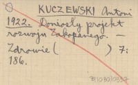 KUCZEWSKI Antoni 1920 [Wzmianka o jego wykładzie pt. O odgruźliczeniu Zakopanego.]