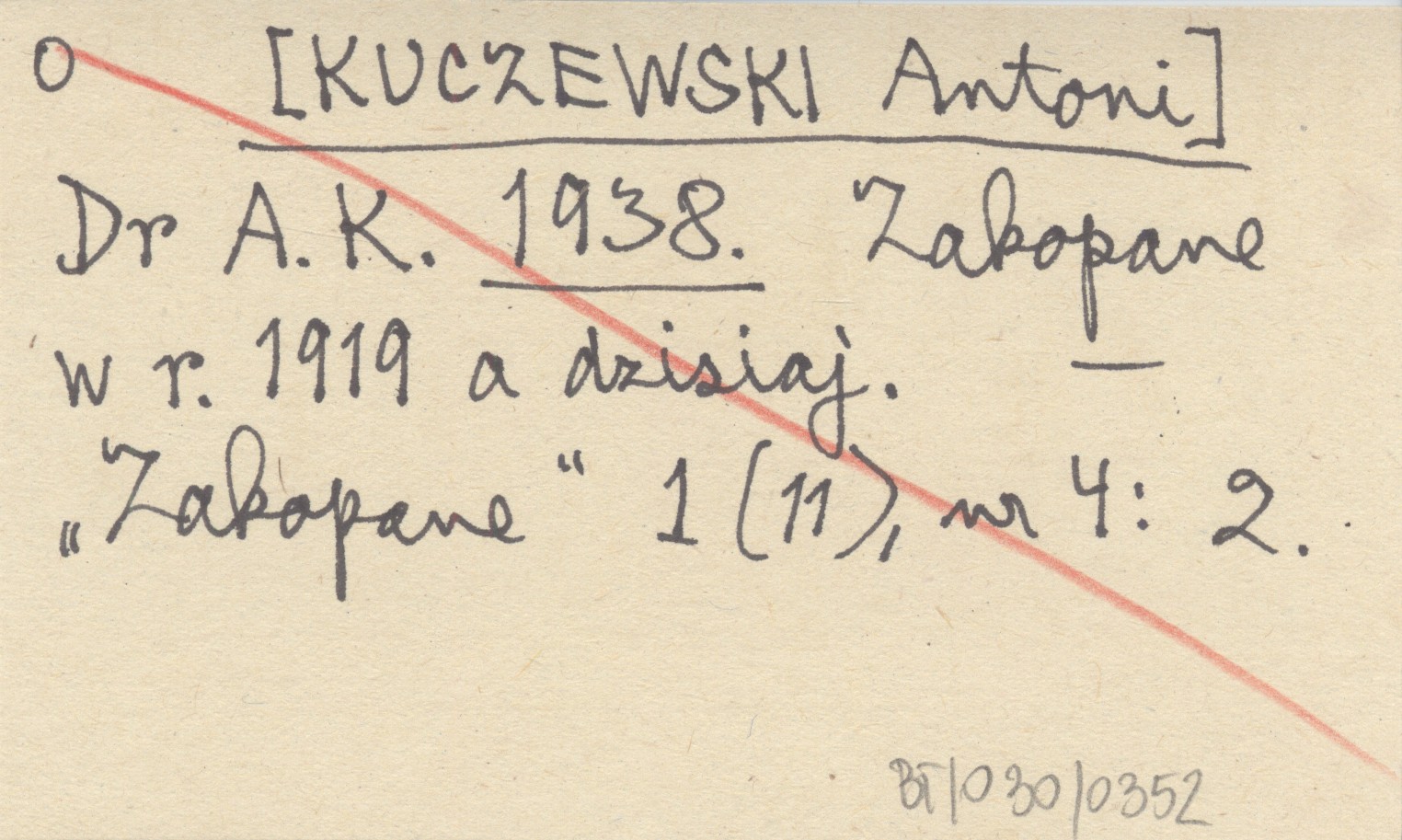 Dr A. K. [KUCZEWSKI Antoni] 1938 Zakopane w r. 1919 a dzisiaj.