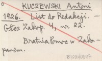 KUCZEWSKI Antoni 1926 List do Redakcji.