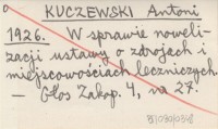KUCZEWSKI Antoni 1926 W sprawie nowelizacji ustawy o zdrojach i miejscowościach leczniczych.