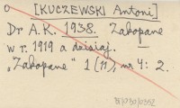 Dr A. K. [KUCZEWSKI Antoni] 1938 Zakopane w r. 1919 a dzisiaj.
