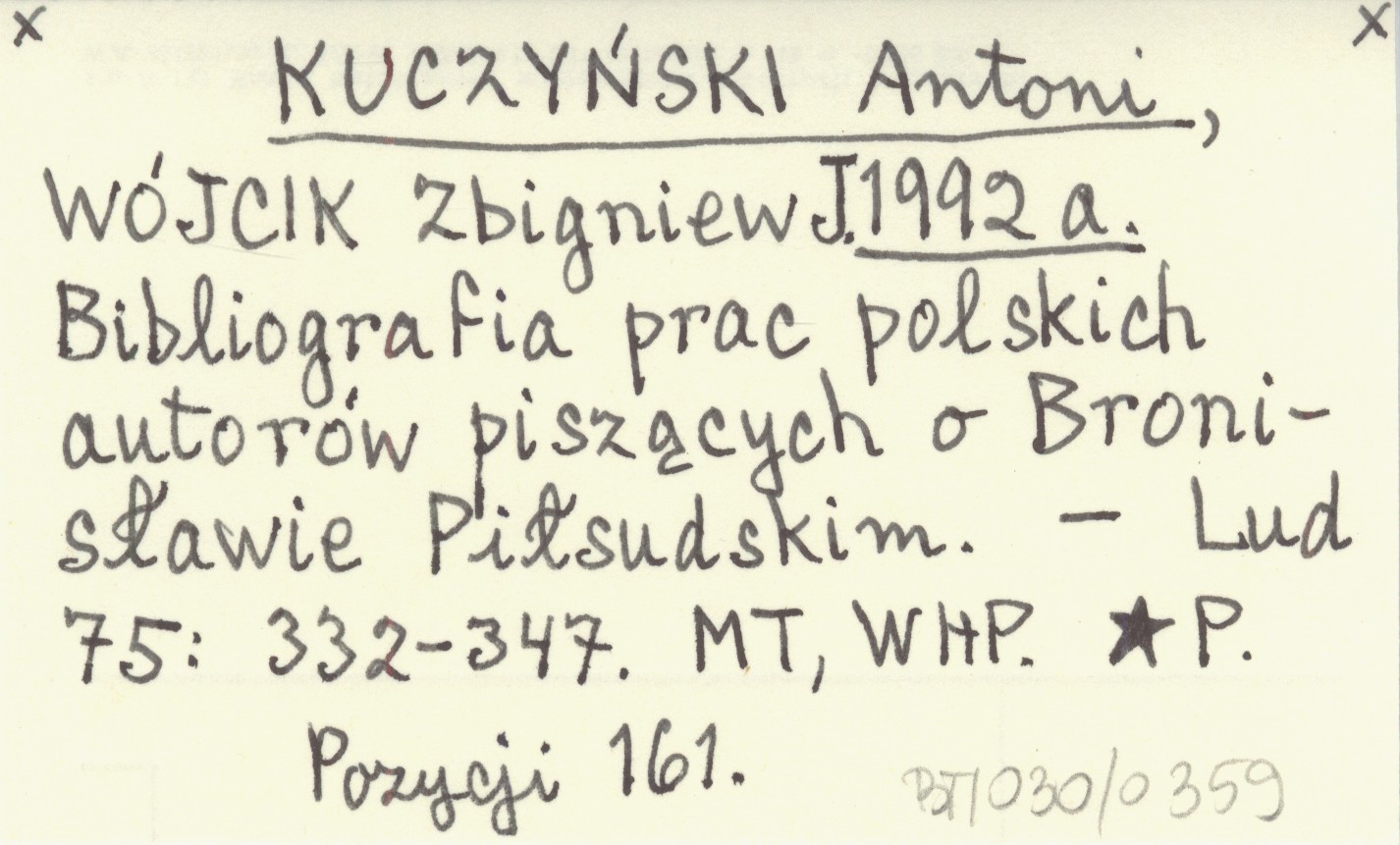 KUCZYŃSKI Antoni WÓJCIK, Zbigniew. ; 1992 a Bibliografia prac polskich autorów piszących o Bronisławie Piłsudskim.