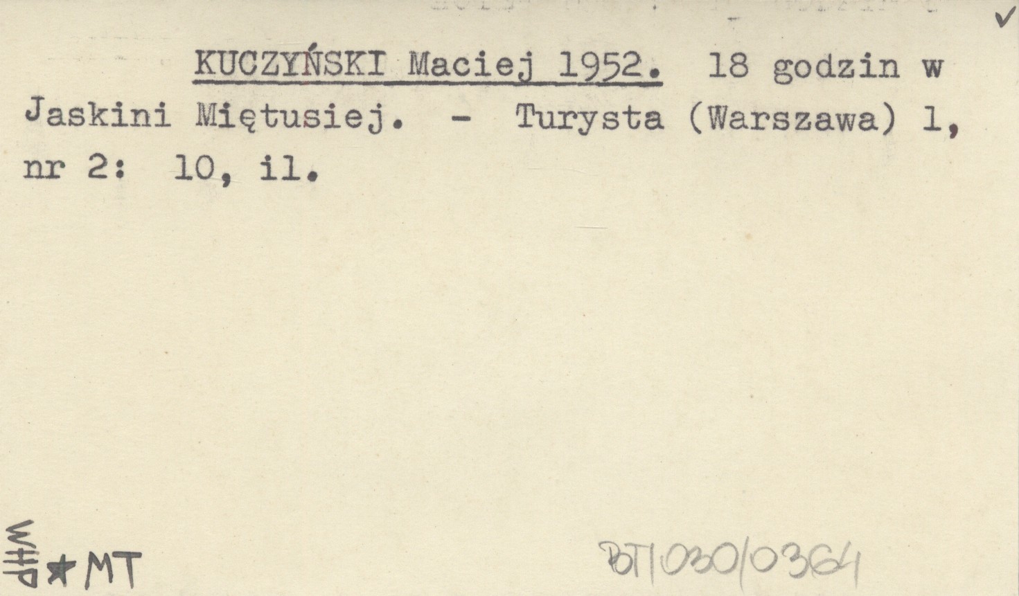 KUCZYŃSKI Maciej 1952 18 godzin w Jaskini Miętusiej.
