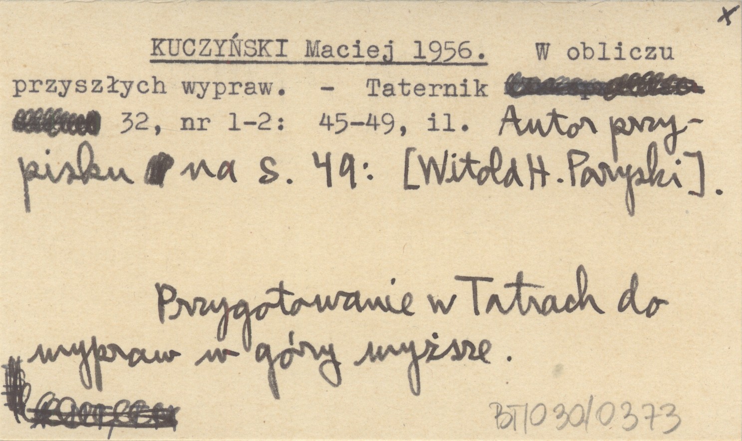 Taternik, 32, nr 1-2: 45-49, il. Przygotowanie w Tatrach do wypraw w góry wyższe. Autor przypisku na s. 49: [Witold H. Paryski].