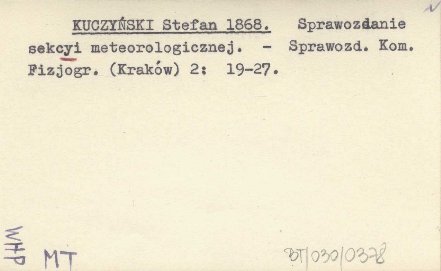 KUCZYŃSKI Stefan 1868 Sprawozdanie sekcyi meteorologicznej.