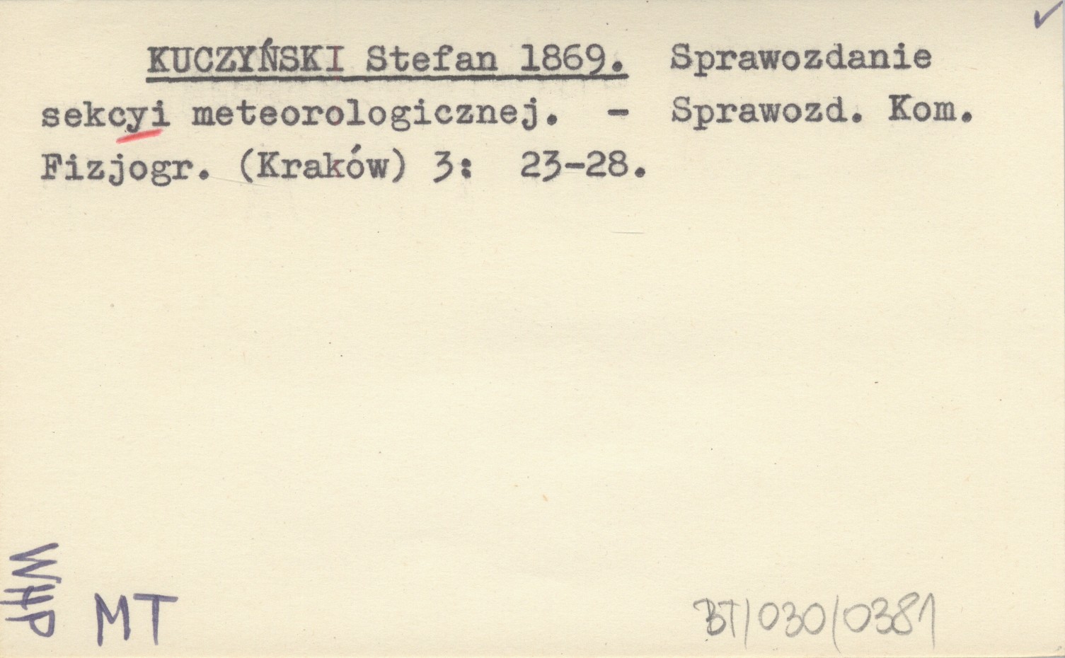 KUCZYŃSKI Stefan 1869 Sprawozdanie sekcyi meteorologicznej.