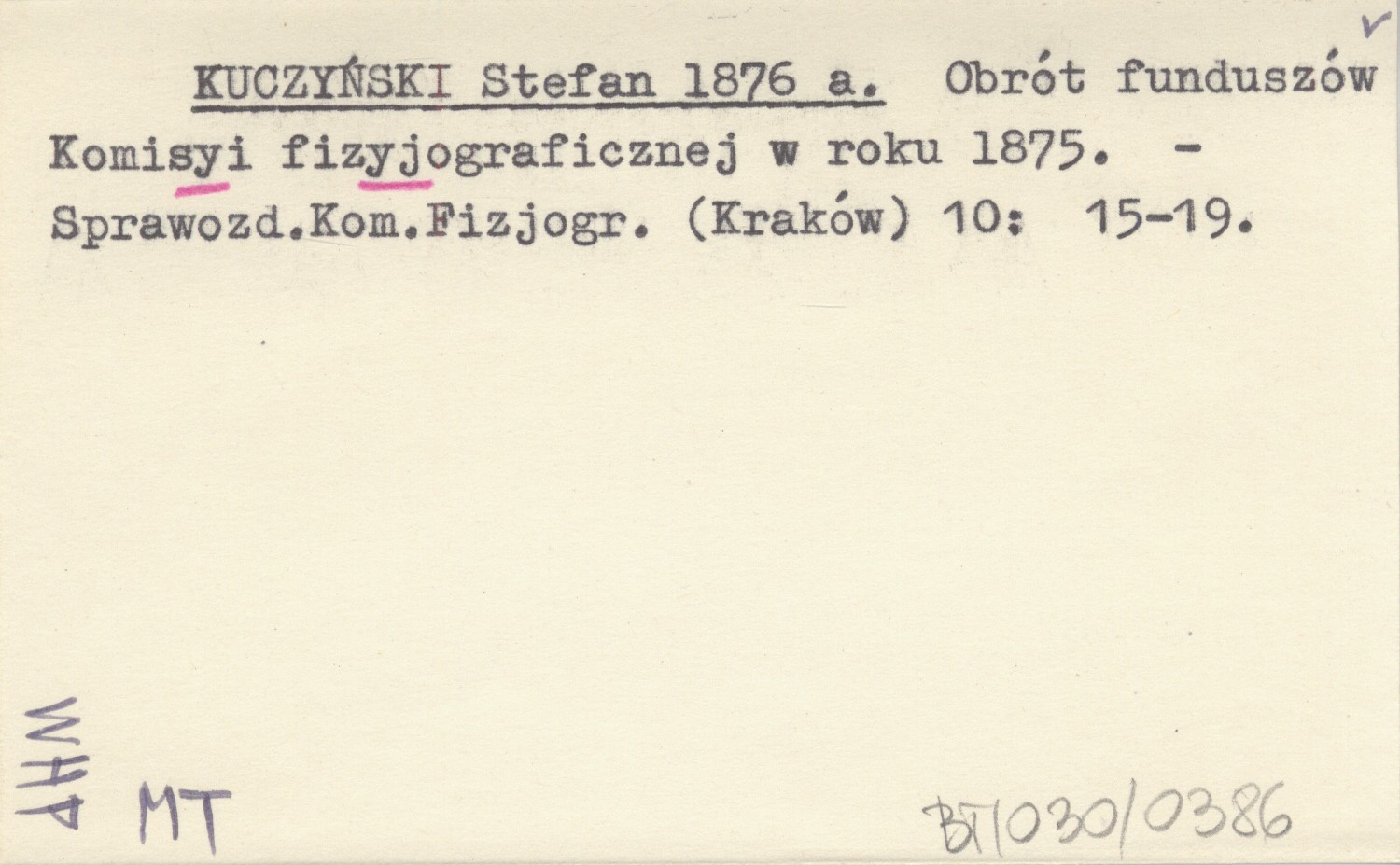 KUCZYŃSKI Stefan 1876 a Obrót funduszów Komisyi fizyograficznej w roku 1875.