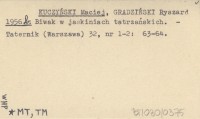 KUCZYŃSKI Maciej GRADZIŃSKI, Ryszard. ; 1956 b Biwak w jaskiniach tatrzańskich.