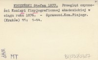 KUCZYŃSKI Stefan 1877 Przegląd czynności Komisyi fizyograficznej akademickiej w ciągu roku 1876.