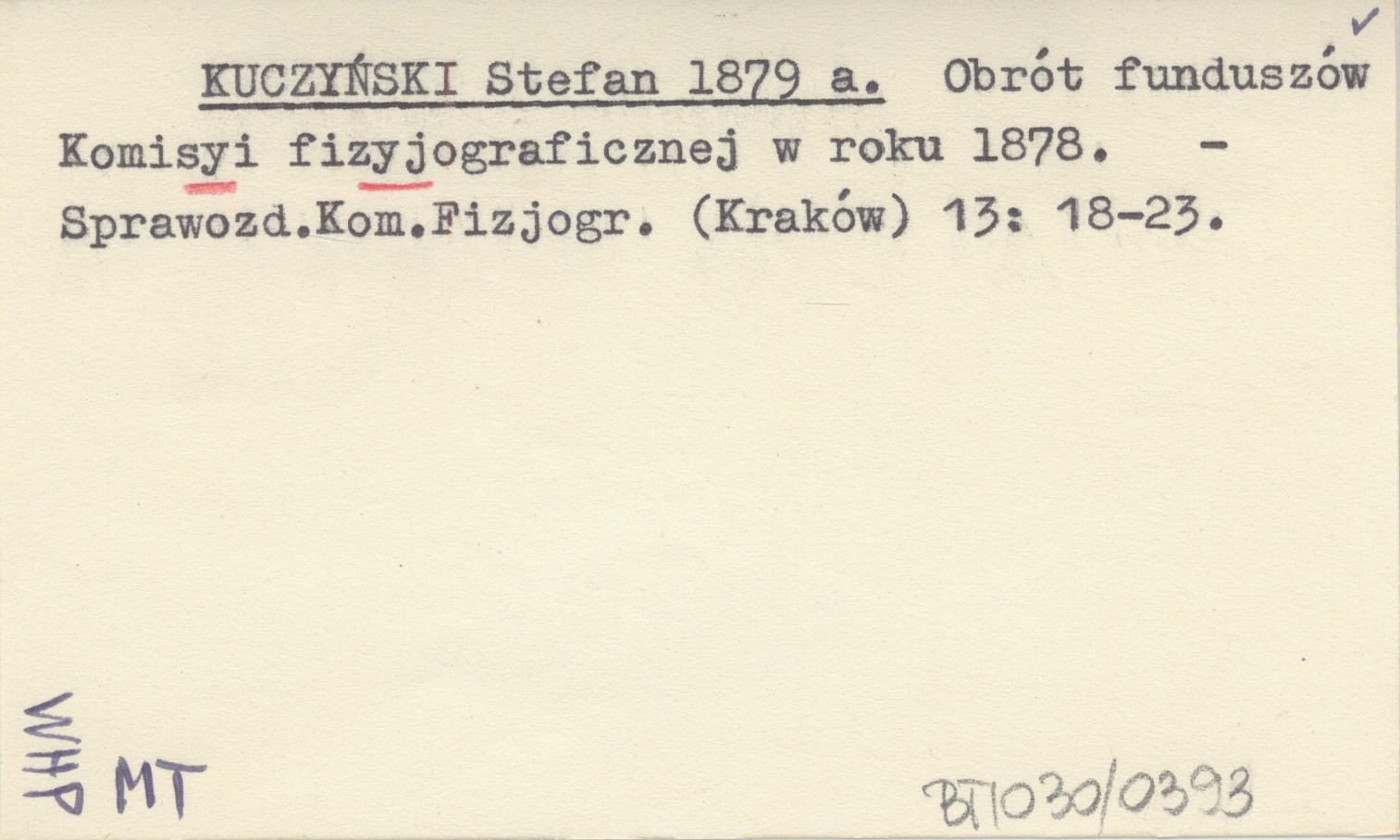 KUCZYŃSKI Stefan 1879 a Obrót funduszów Komisyi fizyograficznej w roku 1878.