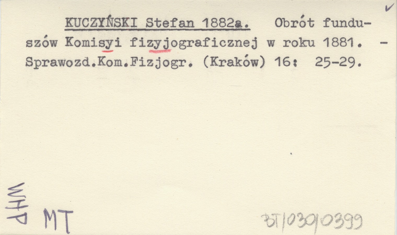 KUCZYŃSKI Stefan 1882 a Obrót funduszów Komisyi fizyograficznej w roku 1881.