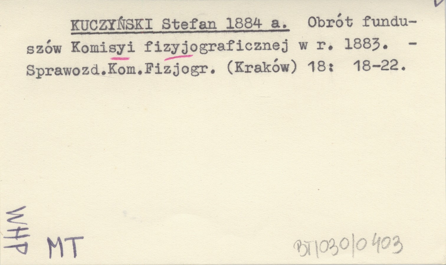 KUCZYŃSKI Stefan 1884 a Obrót funduszów Komisyi fizyograficznej w r. 1883.